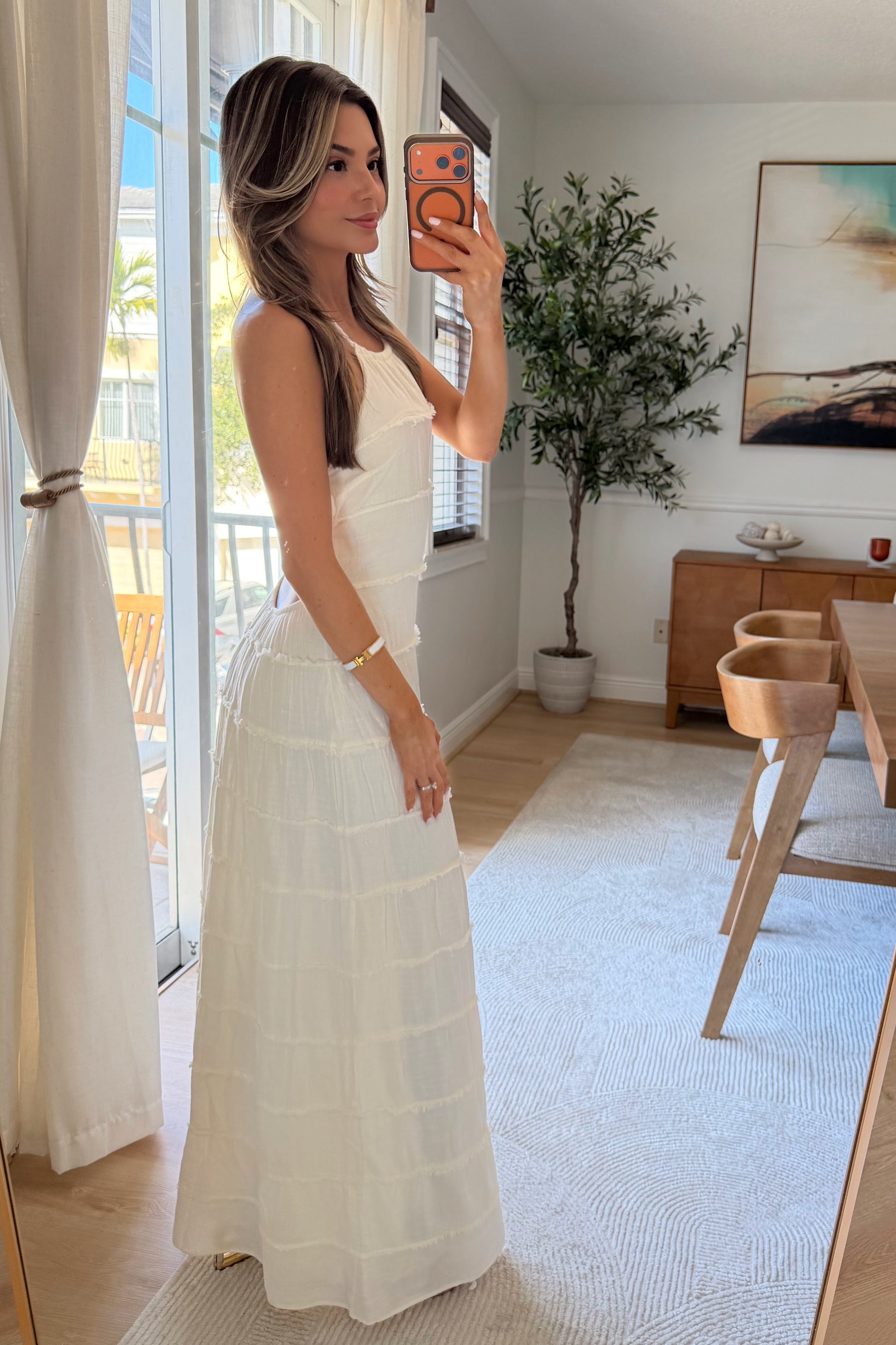 Escape to paradise in the Isa Frayed maxi—your new vacation essential. This stunning baby blue beauty features a flattering halter neckline and smocked elastic back for the perfect fit that moves with you. Crafted from lightweight cotton, it's breathable and breezy for those sun-soaked getaways. Whether you're strolling beachside or enjoying sunset dinners, this fab dress delivers effortless elegance and comfort all day long.